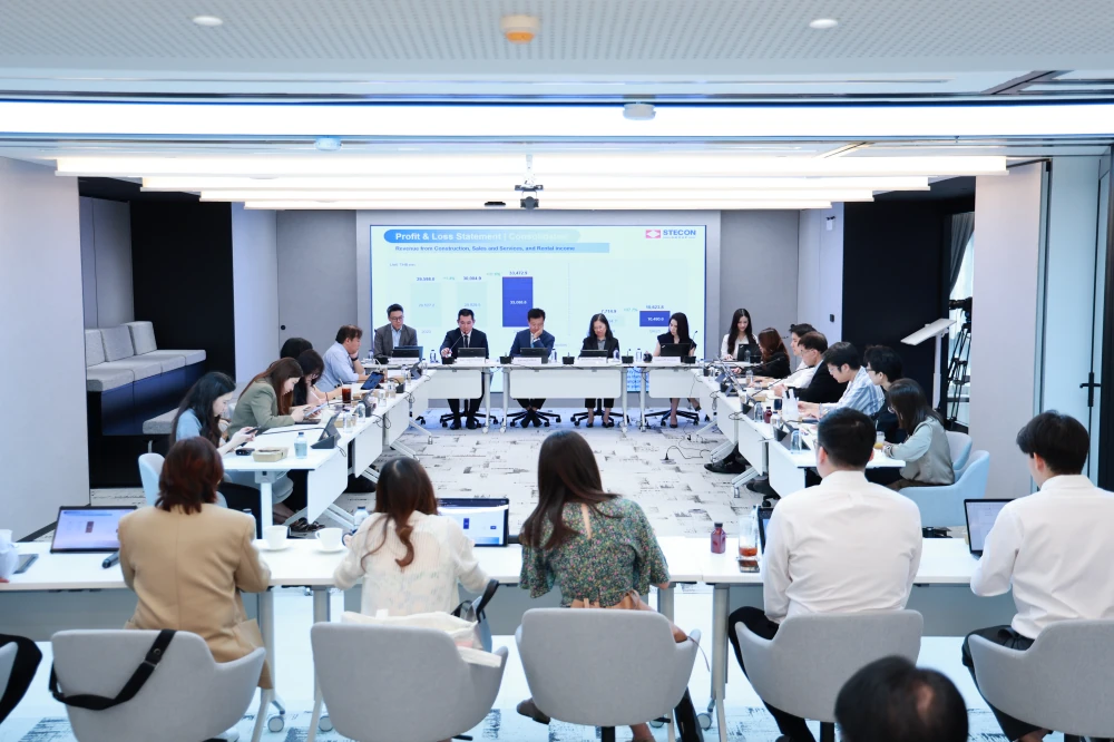 วันที่ 2 มีนาคม 2569 บริษัท สเตคอน กรุ๊ป จำกัด (มหาชน) และกลุ่มบริษัท ได้จัดงานประชุมนักวิเคราะห์ เพื่อนำเสนอภาพรวมการดำเนินงาน รายงานผลประกอบการของบริษัทฯ ประจำไตรมาสที่ 4/2568 พร้อมเป้าหมายทางธุรกิจสำหรับปี 2569 และแนวโน้มธุรกิจในอนาคต โดย คุณภาคภูมิ ศรีชำนิ ประธานเจ้าหน้าที่บริหารกลุ่ม และกรรมการผู้จัดการใหญ่ (Stecon) พร้อมด้วย คุณใจแก้ว เตชะพิชญะ ประธานเจ้าหน้าที่บริหารกลุ่มบัญชีและการเงิน (Stecon) คุณจารุณัฐ จิรรัตน์สถิต กรรมการผู้จัดการ (Stec) คุณเอกชัย นิทัศนจารุกุล ประธานเจ้าหน้าที่บริหารกลุ่มกลยุทธ์และธุรกิจใหม่ (Stecon) และคุณศุภวรวีร์ รักษ์กุลชน หัวหน้างานนักลงทุนสัมพันธ์ (Stecon) โดยมี นักวิเคราะห์ เข้าร่วมการประชุมในครั้งนี้ ณ ห้องประชุม ชั้น 11 อาคารสเตคอน ทาวเวอร์